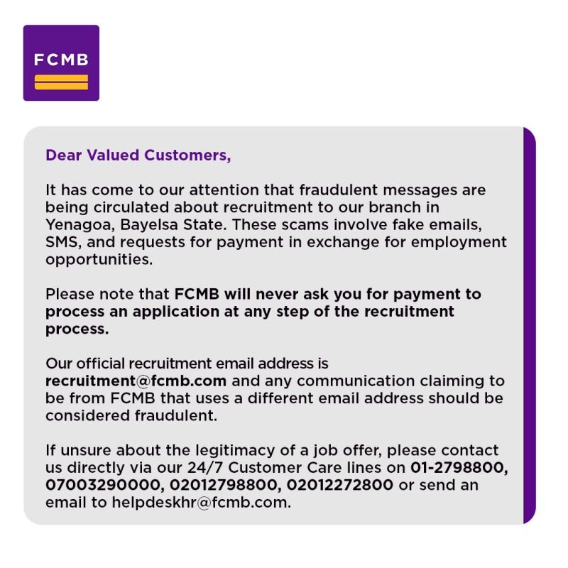 FCMB takes pride in offering personalized service tailored to each customer’s needs. Whether you prefer to interact with a live agent, use the mobile app, or chat online, FCMB ensures that you receive the assistance you need in the way that suits you best.